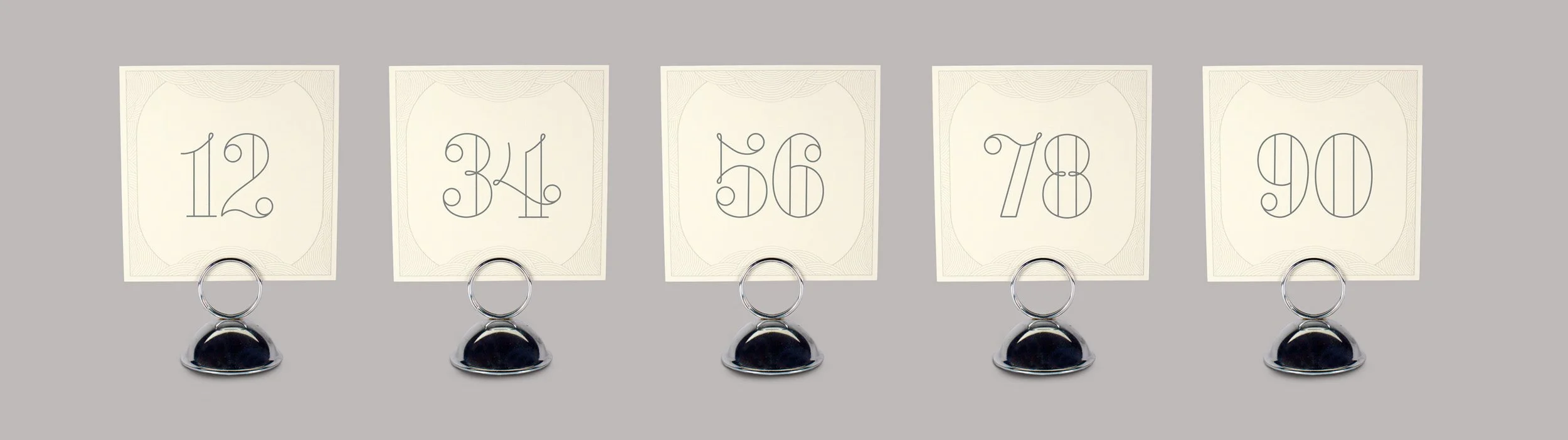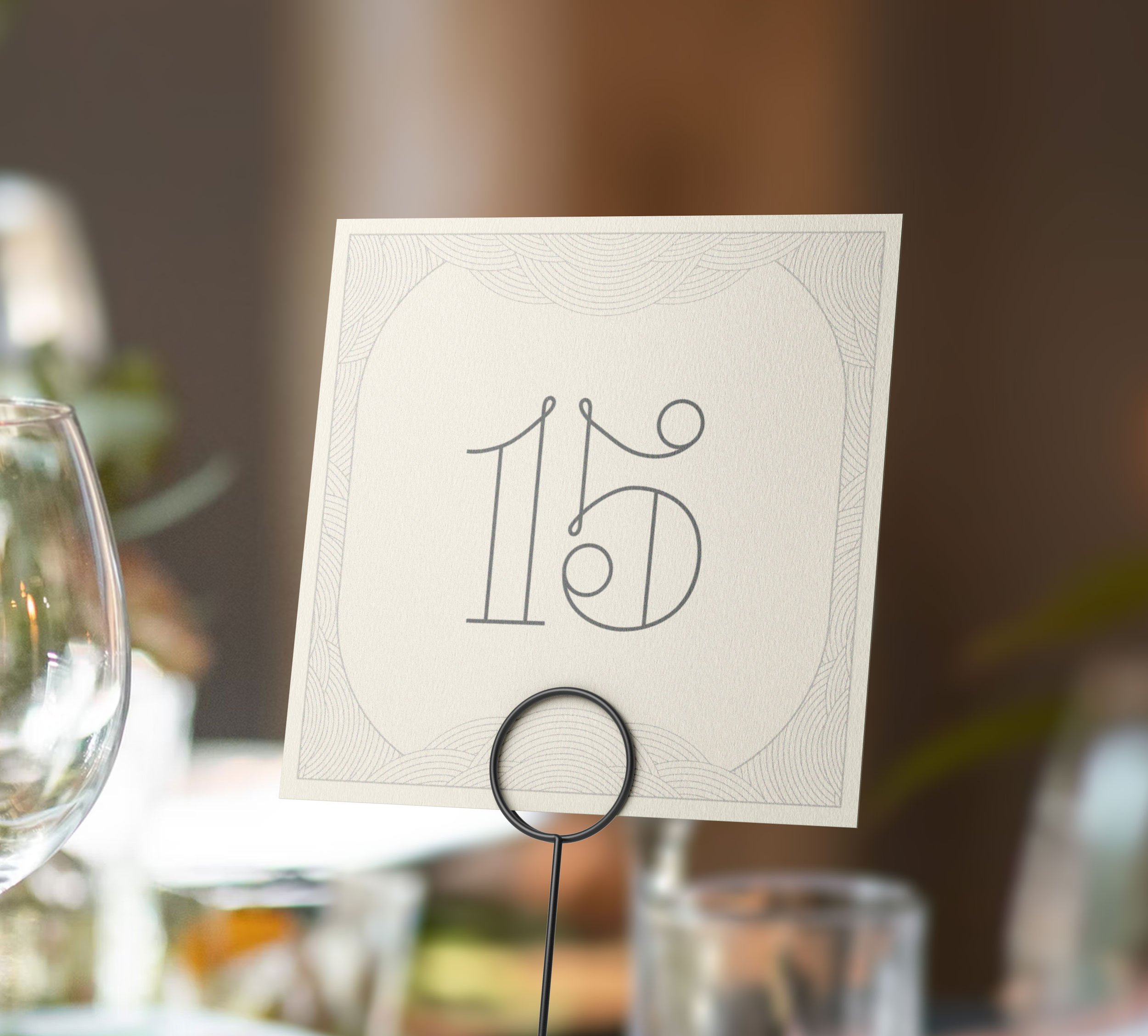 Based on the “35” element from the hero artwork, I developed a custom-made numeric font to produce table numbers.