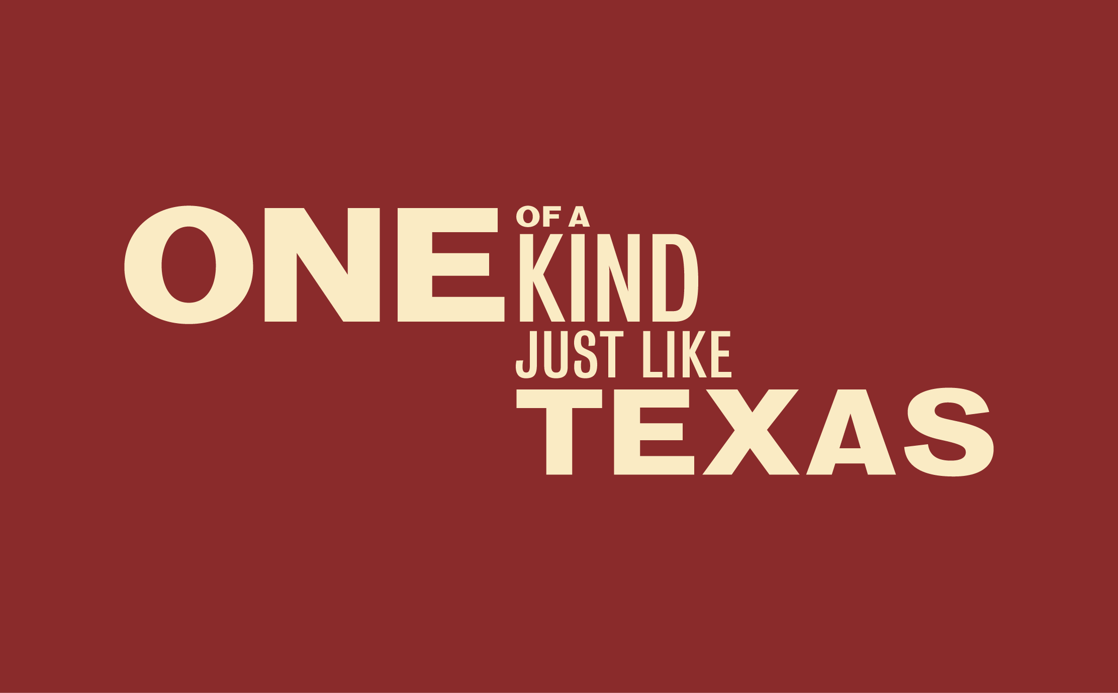The logo consists of a customized wordmark and star graphic. The star tilts at a familiar angle, reminiscent of the angled star in the TAA logo. The combined form creates a Texas-shaped silhouette, and the different weights and widths of type, combined with the star’s tilt, exude a “Texas swagger.”