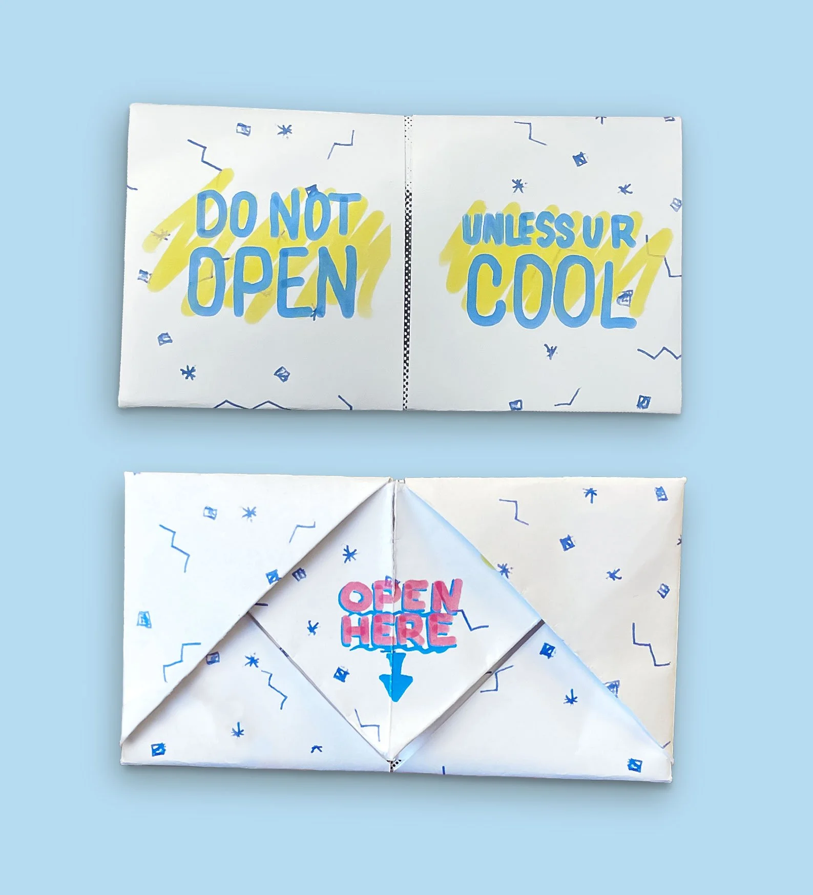Ballpoint pen doodle designs and copywriting are by me. Highlighter marker lettering is by Bart Kibbe.